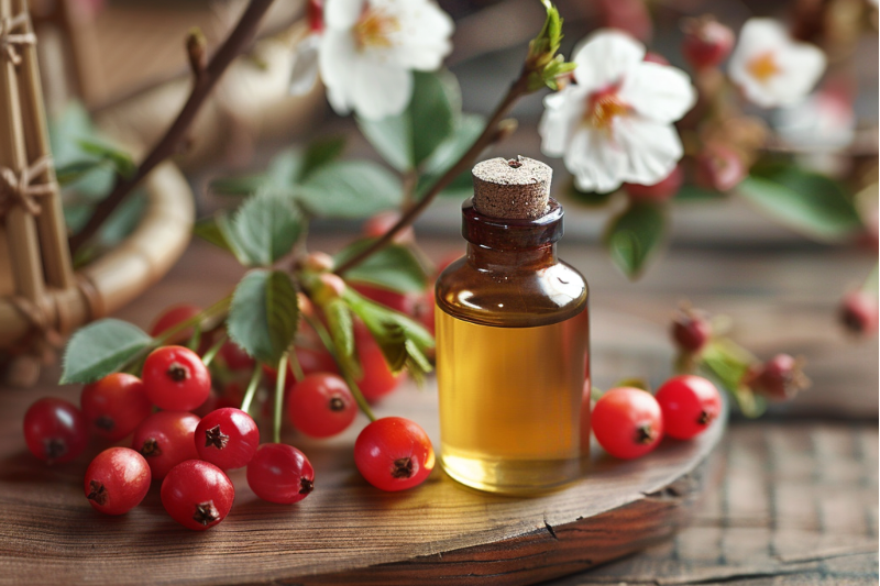 Rosehip massage oil, derived from rose seeds and the fruits, is beneficial for health, including hormone regulation and menopause management. Key benefits include: